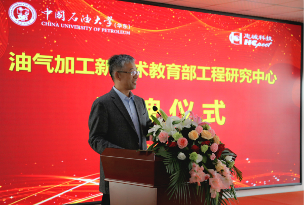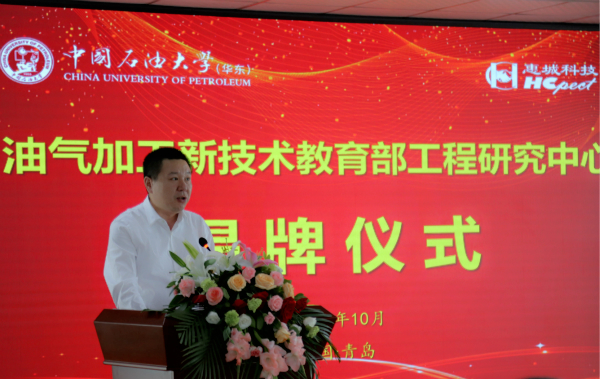 在熱烈的掌聲中,郝芳校長、逯鷹部長一起為“油氣加工新技術教育部工程研究中心”揭牌。