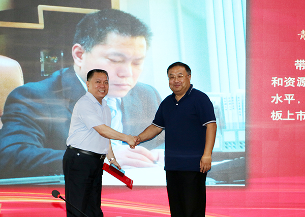 上,逯鷹部長向董事長張新功頒發了“新區成立5周年突出貢獻人物”和“山東省優秀共產黨員”的證書及獎牌,并對他帶領企業突破化工固廢無害化處理和資源化利用關鍵技術的突出貢獻表示肯定。