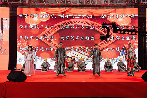 5點30分,文藝晚會正式開始。創意節目精彩紛呈,全場氛圍熱烈火爆。生產管理部的三句半編排讓人倍感新鮮,情景劇“惠城奇幻夜”天馬行空,舞美效果將晚會推向高潮,小品“相親”表演讓人捧腹,戲曲與勵志歌曲串燒HIGH翻全場……