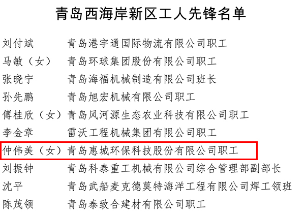 大力弘揚勞模精神、勞動精神、工匠精神,激勵全區廣大職工愛崗敬業,爭創一流,日前,青島西海岸新區總工會發起了新區工人先鋒(號)的推薦評選工作。經過考察評比,我公司銷售團隊和仲偉美個人喜獲 “工人先鋒號”和“工人先鋒”榮譽稱號。