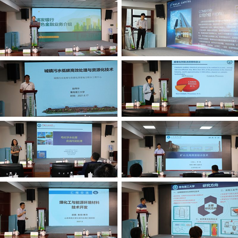 在隨后召開的新區綠色環保產業產學研金對接會上,來自上海浦發銀行、山東開來資本的負責人就綠色環保產業金融政策進行了宣講,來自中國石油大學(華東)、青島理工大學、山東科技大學的專家學者就各自在綠色環??萍碱I域取得的重大成果進行講解。
