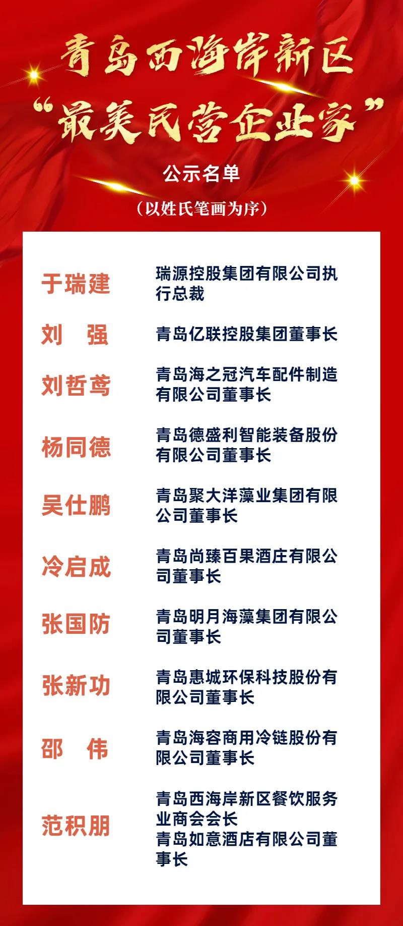 近日,工委區委統戰部、工委區委宣傳部、區工商業聯合會(區民營經濟發展局)聯合開展青島西海岸新區“最美民營企業家”評選活動。經過廣泛宣傳發動、優秀典型推薦、綜合評價、聯合評分等程序,評選出10名青島西海岸新區“最美民營企業家”,青島惠城環??萍脊煞萦邢薰径麻L、總經理張新功入選。