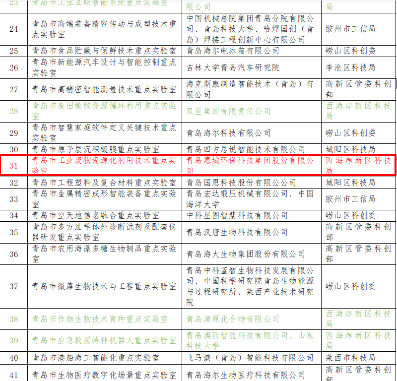 青島市重點實驗室是開展前沿創新領域工作的重要支撐,更為青島市高質量發展保駕護航。近年來,青島惠城環保科技集團股份有限公司始終以“綠水青山就是金山銀山”為發展理念,在工業“三廢”資源循環利用技術創新及工業應用等方面積累了豐富的成功經驗,作為環保型高新技術企業,公司將充分發揮行業和技術領先優勢,面向國家戰略科技發展技術需求,開展應用基礎研究及競爭前沿技術研究,為提升產業核心競爭力、推動行業技術進步提供支撐。
