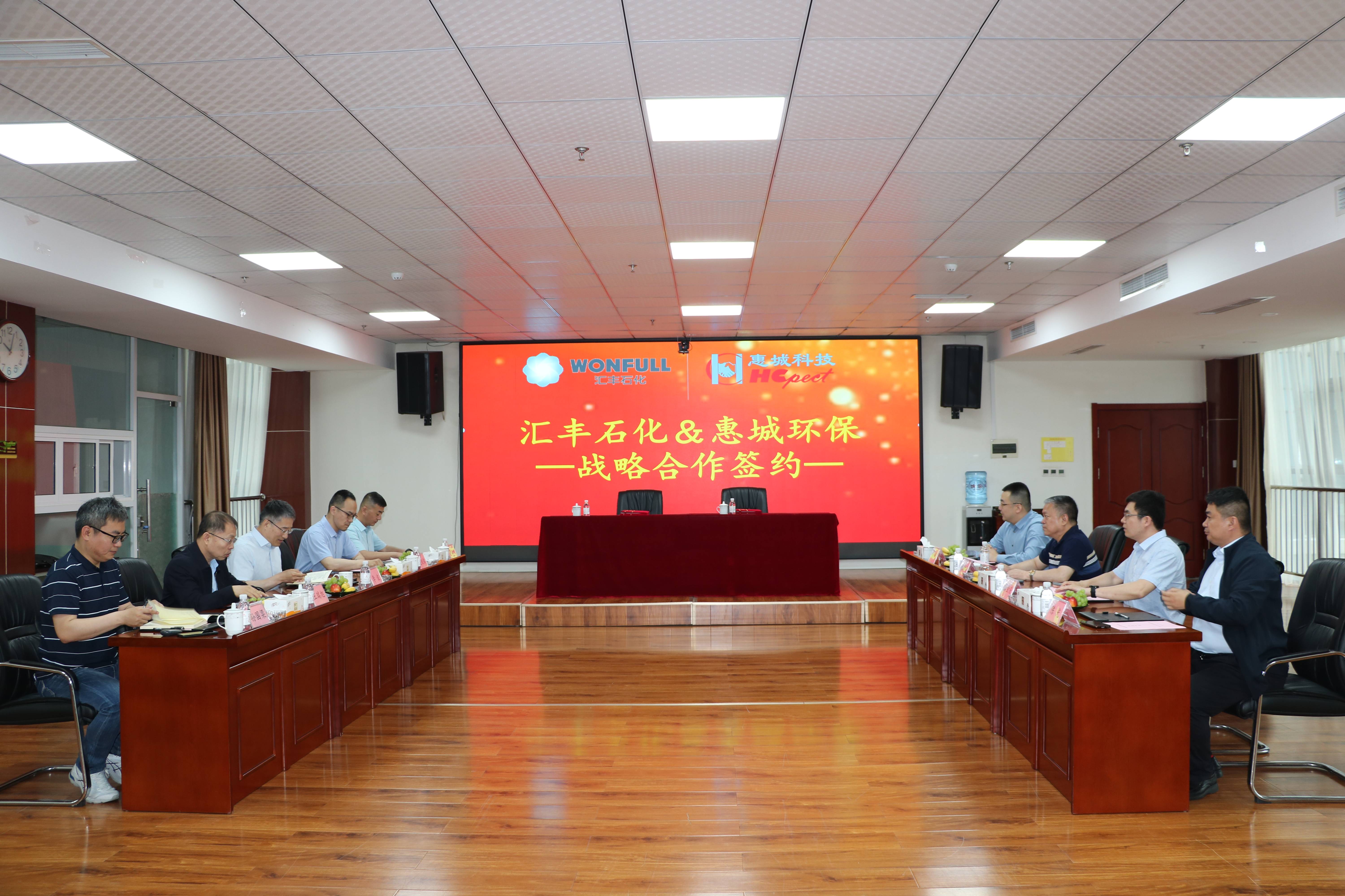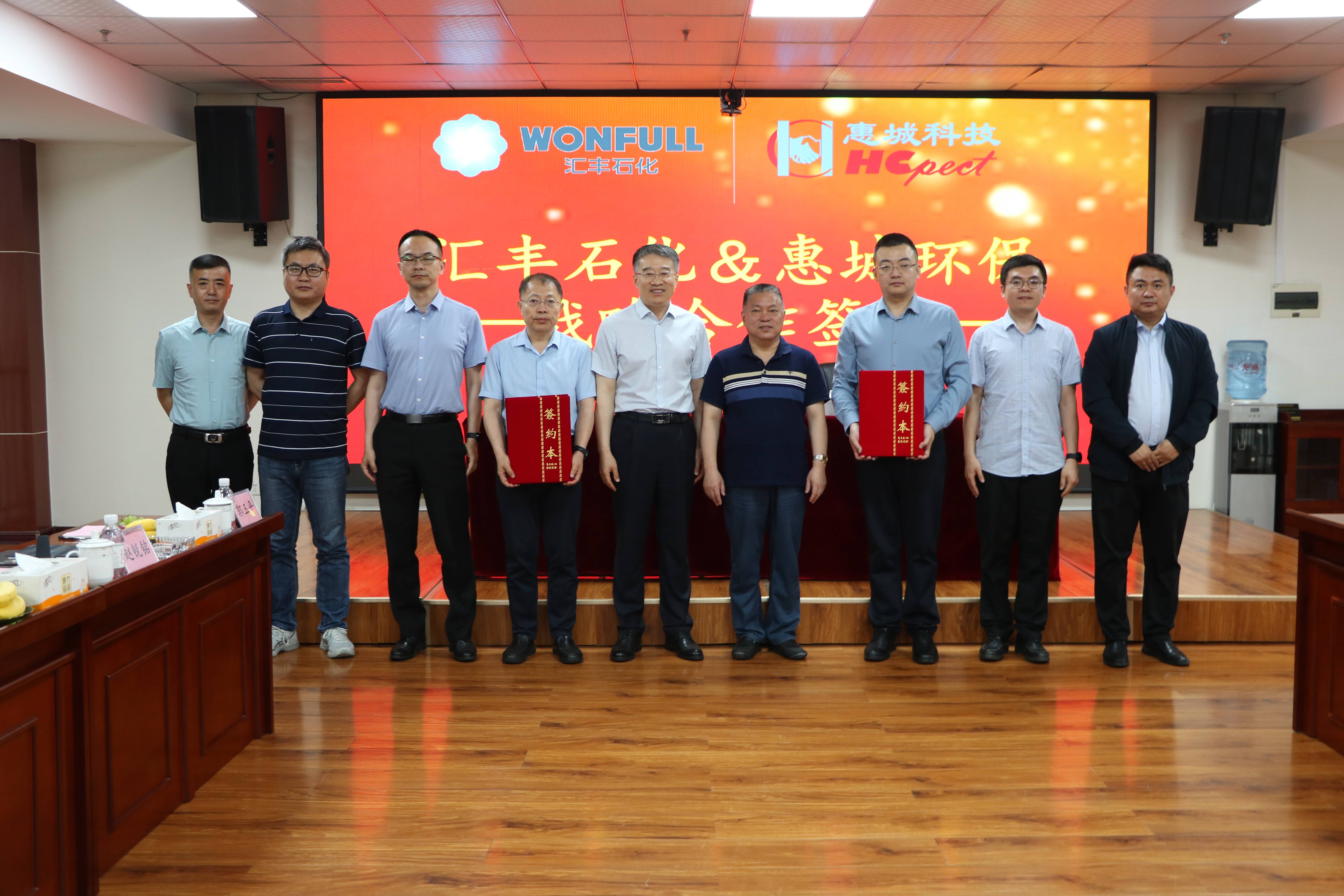 為進一步推動綠色循環經濟高質量可持續發展,加快先進環保技術成果轉化落地,5月18日,青島惠城環??萍技瘓F股份有限公司(以下簡稱“惠城環?!保┡c山東匯豐石化集團有限公司(以下簡稱“匯豐石化”)戰略合作簽約儀式在惠城環保研發大樓418會議室隆重舉行。匯豐石化總裁李波、總工程師王瑞旭,惠城環保創始人張新功、總經理林瀚等出席簽約儀式。