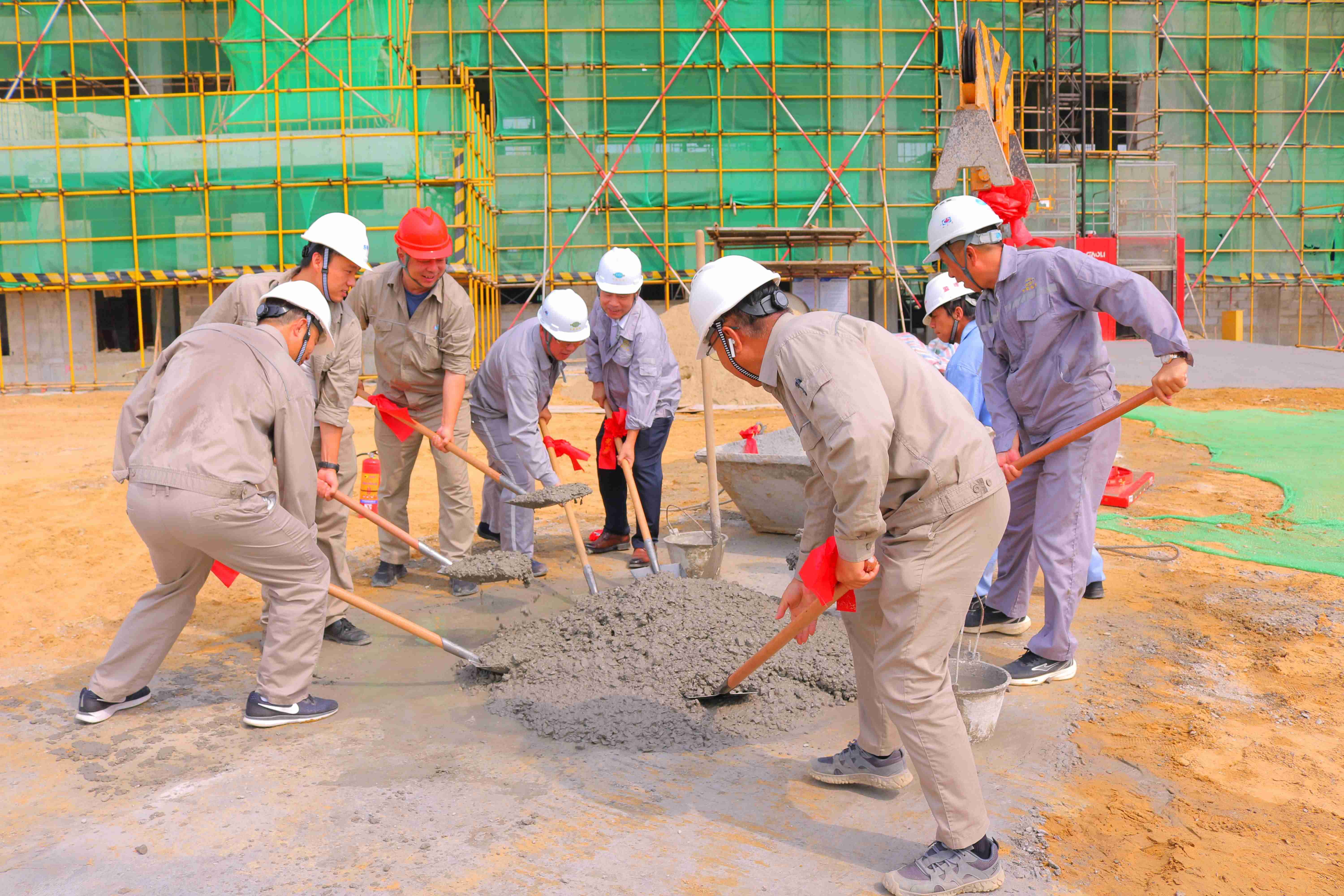 時風澍雨釀花天,吉日良辰喜報連。8月8日,隨著最后一段頂板混凝土完成澆筑,20萬噸/年混合廢塑料資源化綜合利用示范性項目辦公樓結(jié)構(gòu)喜封金頂,標志著項目階段性節(jié)點順利完成,為年底建成投產(chǎn)奠定了堅實基礎。惠城環(huán)保集團子公司廣東東粵化學科技有限公司總經(jīng)理李恩泉、中國化學工程第四建設有限公司華南分公司黨委書記尋飛躍、廣州石化建設監(jiān)理有限公司總監(jiān)理工程師盛筠等領導出席封頂儀式。